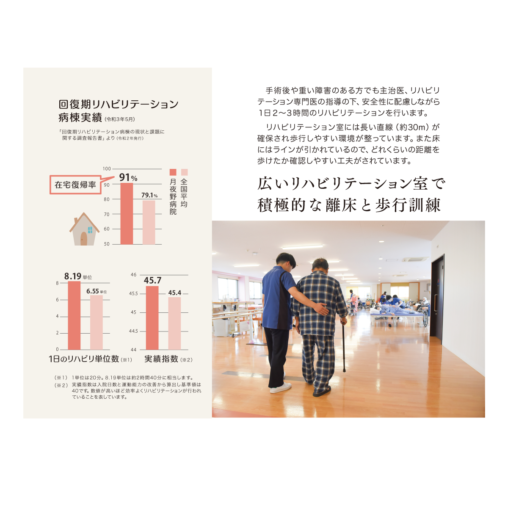 広いリハビリ施設、チーム医療、福祉へのつながり、実績など、説明しやすく受けとる側に伝わるよう構成